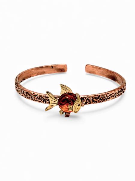 Kehribarın binlerce yıl süren doğal oluşumundan gelen sıcak, arındırıcı ve dengeleyici enerjisi; balık figürünün özgür, sezgisel ve akışkan ruhuyla birleşerek anlamı güçlü, özel bir bileklik ortaya çıkarır. El işçiliğiyle bakır üzerine işlenen bu tasarım, kehribarın doğal sıcak tonlarını zarif bir ışıltıyla öne çıkarır.